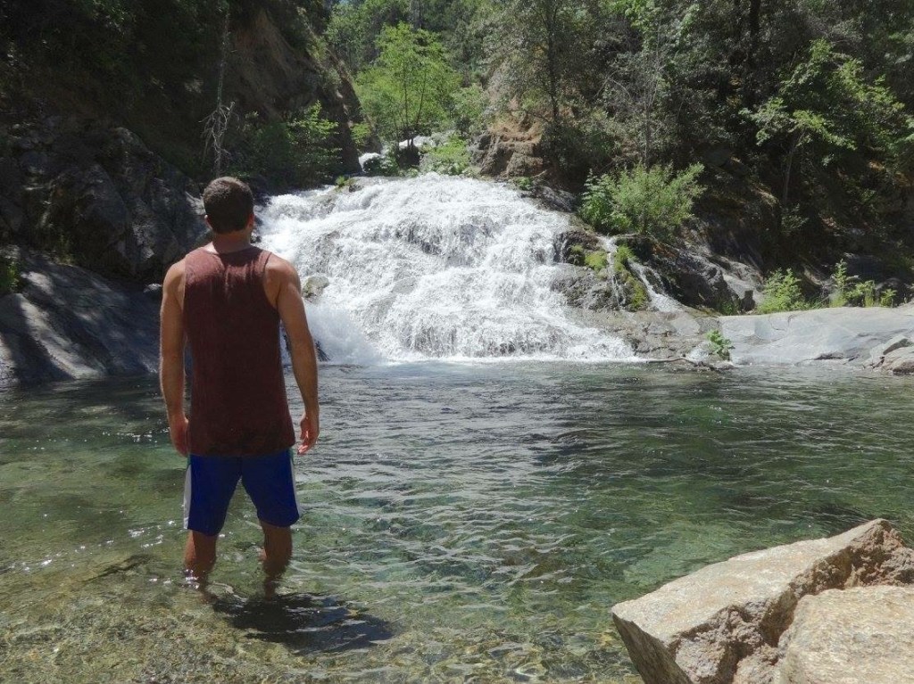 I knew I wouldn’t be in contact with rodents. It’s not in my liking to approach them, unless we are talking about an adorable golden-mantled ground squirrel posing for a picture in Bryce Canyon. Apart from that I didn’t foresee rodents being a concern. But fleas, on the other hand, well, I didn’t know a lot about flees except that they were insects and insects get around. So I stepped out of my car and drenched myself in deet, and then I soon forgot that the Plague was even an issue. I set up my tent in the company of tall pines. In the distance between the pines I could see the snow capped mountains of the Sierra Nevada. When camp was set up, I walked across the smooth paved campground road to a general store on the grounds. I wanted to inquire about the coin showers. I exchanged my dollars for coins, enough for me to have two complete shower cycles.